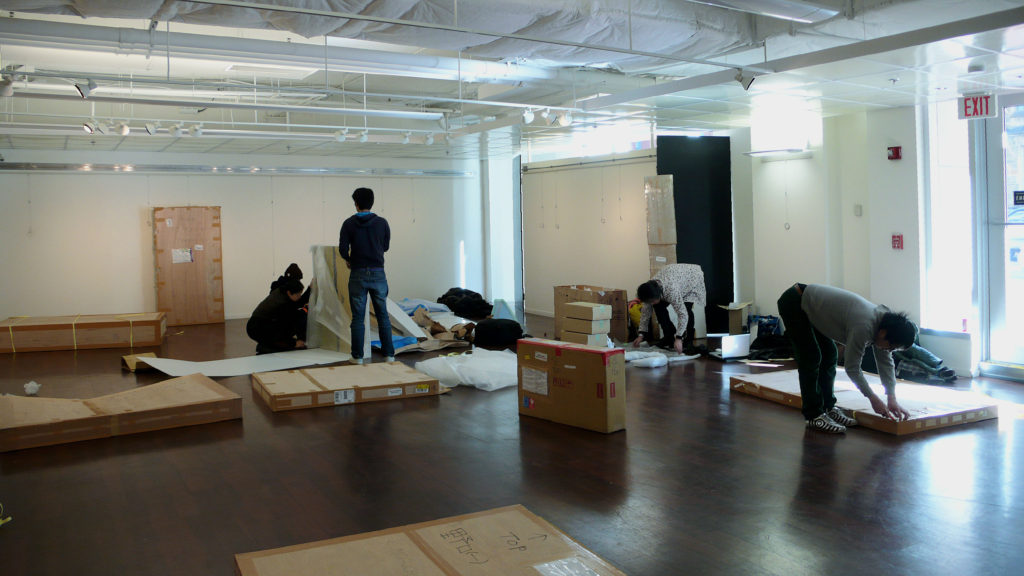 会場が決まると、私はアーティストたちに日時・テーマ(あれば)・最初のミーティング日時を伝えました。ミーティングではラフスケッチの提出期限を設定し、展示準備に関わるタスク(リスト作成、スケジュール管理、資金集め、カタログ制作、招待状作成、名札の用意など)を分担しました。何度か展示を重ねるうちに、グループ全体の運営もスムーズになっていきました。