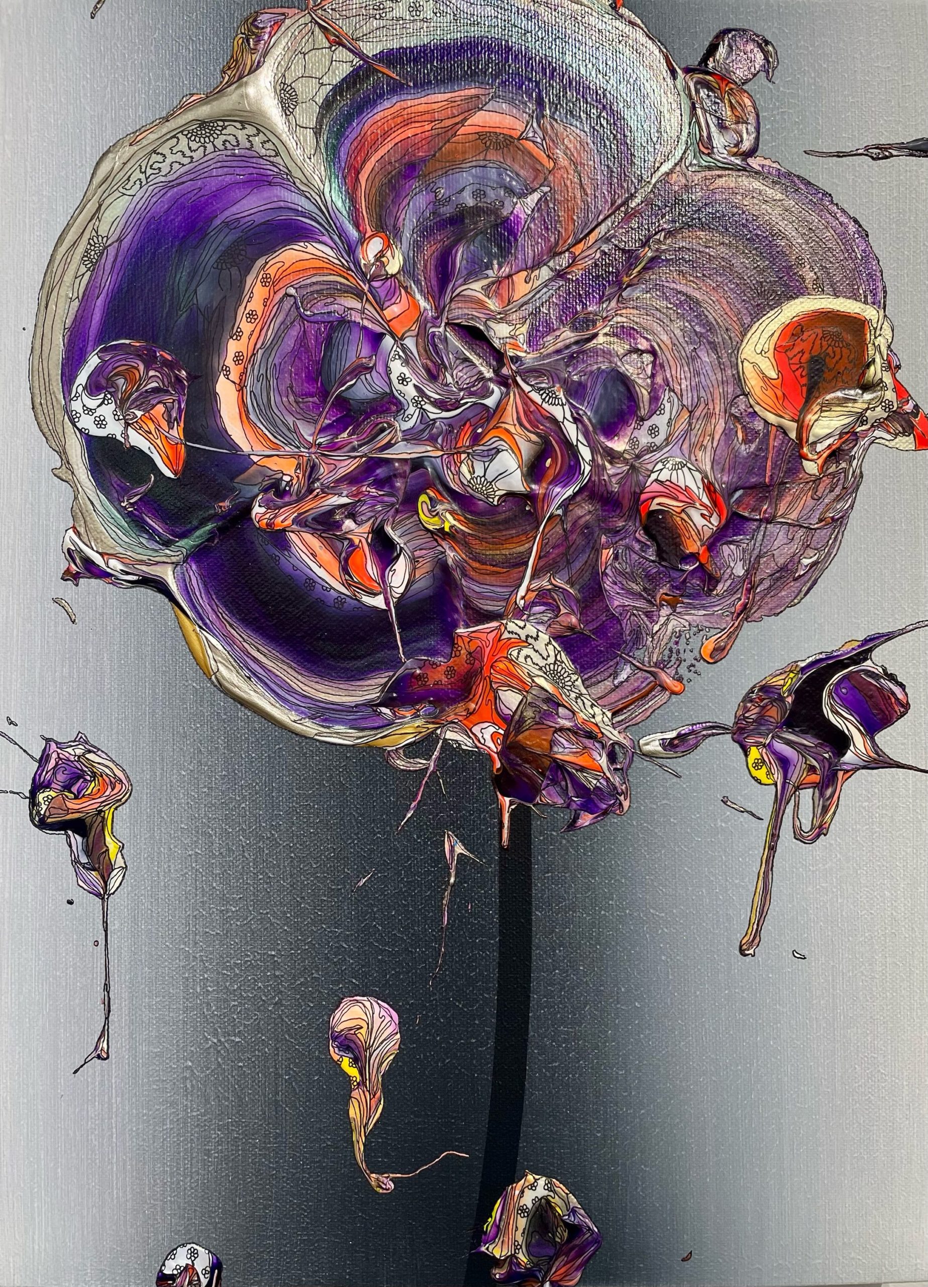 Abstract Single Flower 240720 (Dark Gray Gradation x Purple)