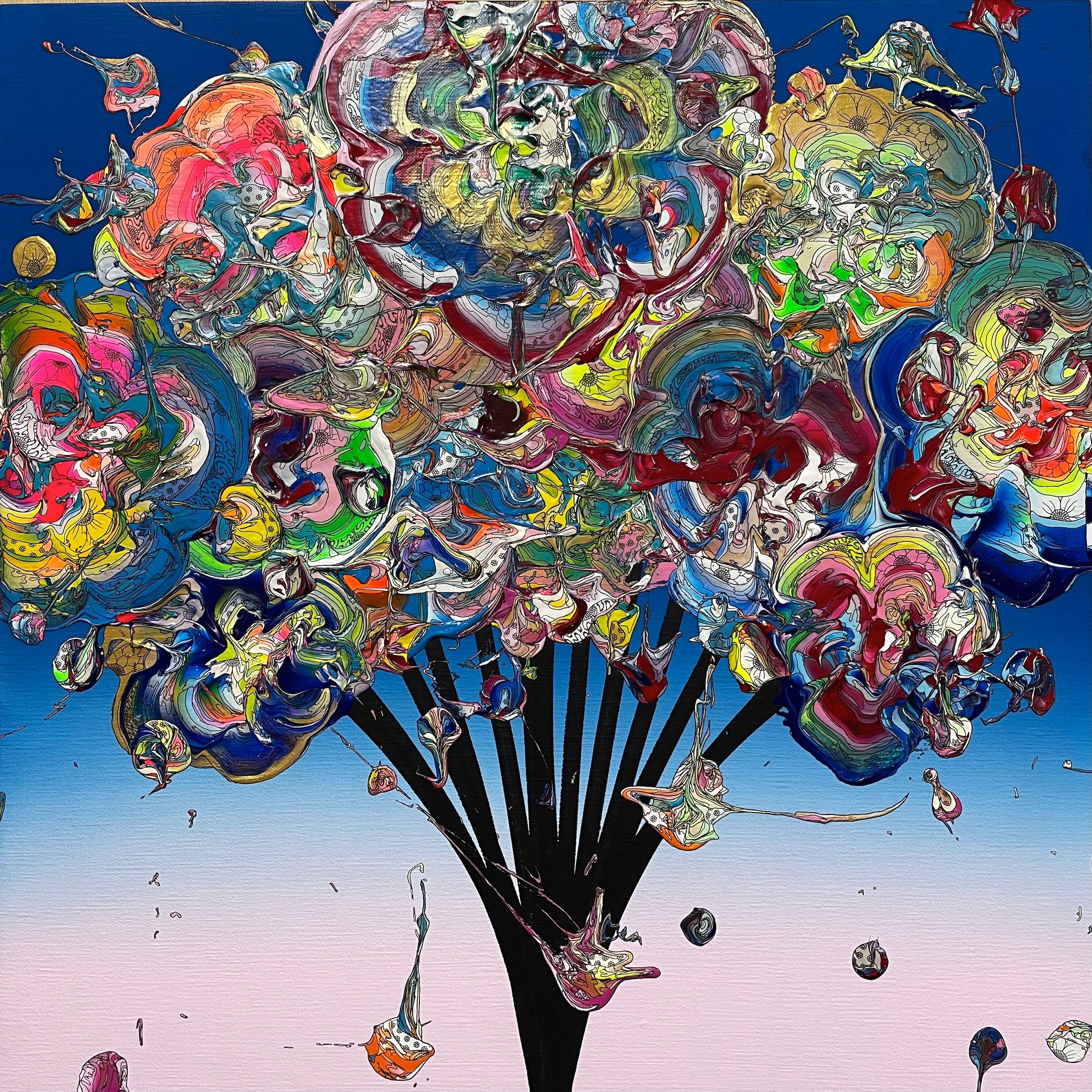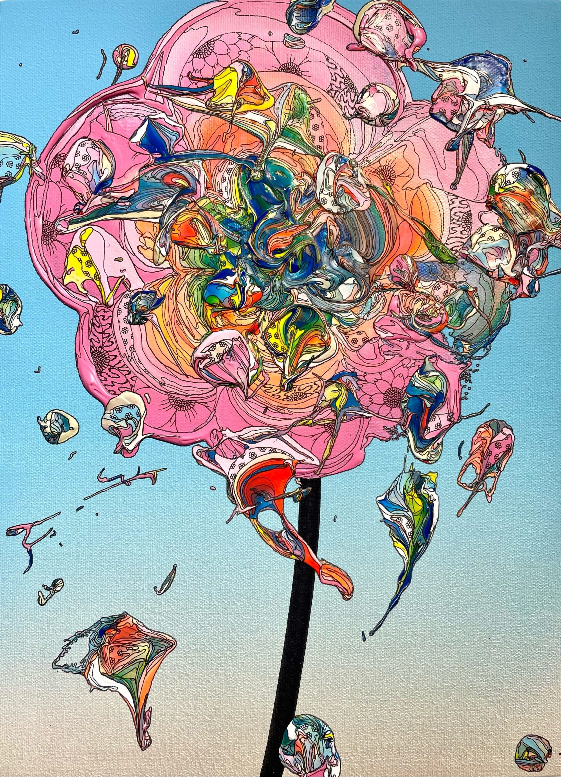 Abstract Single Flower 240720 (Sky Blue Gradation x Pink)