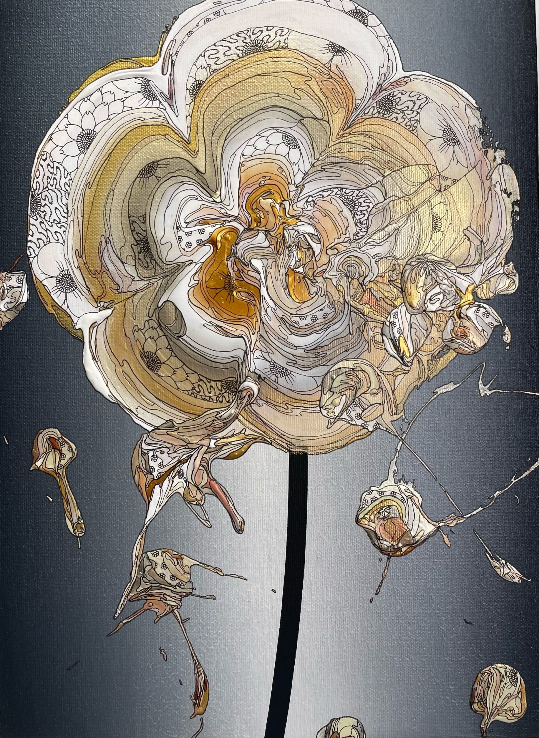 Abstract Single Flower 240720 (Dark Gray Gradation x Gold)